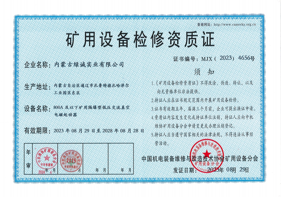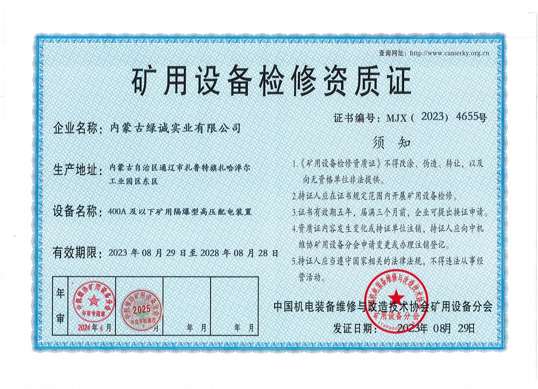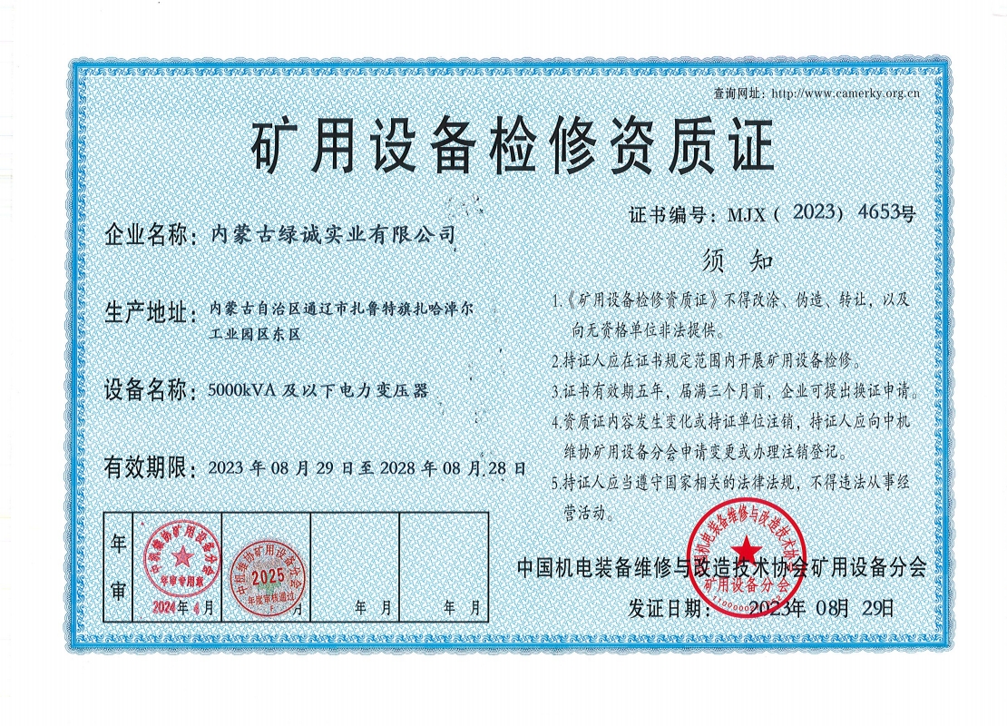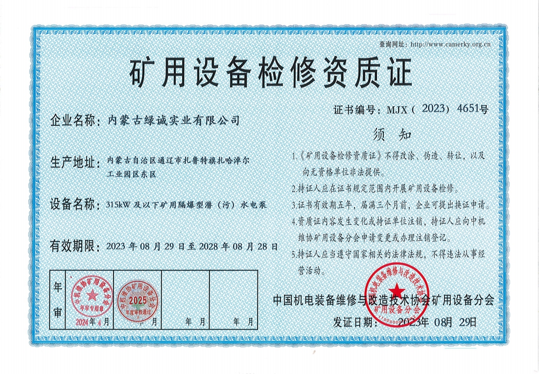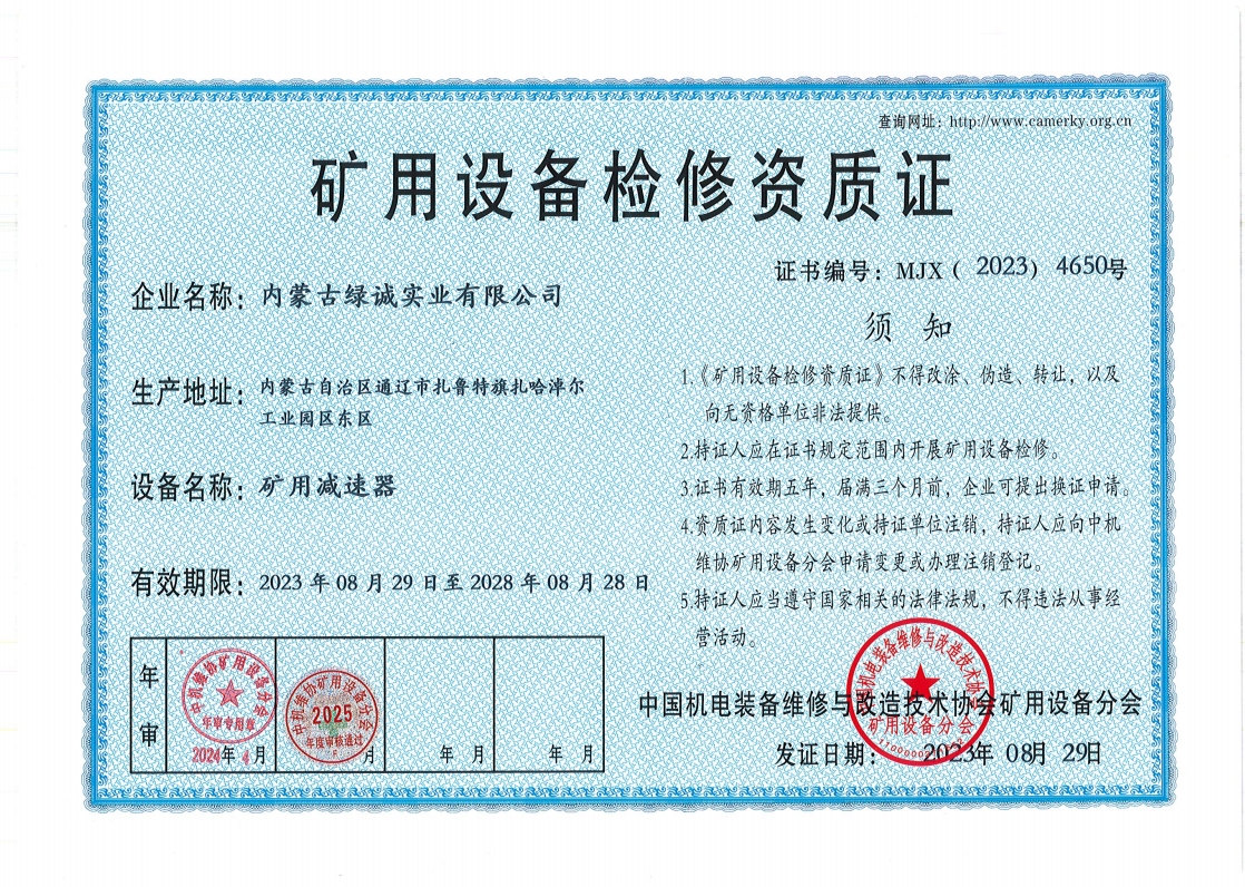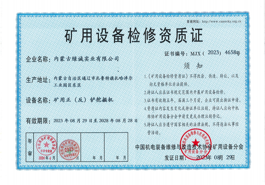 2018年我公司通過中國(guó)機(jī)電裝備維修與改造技術(shù)協(xié)會(huì)礦用設(shè)備分會(huì)審核并取得了9項(xiàng)礦用設(shè)備檢修資質(zhì)證書。公司本著“誠(chéng)信為本 質(zhì)量為先 全心全意為客戶 ”的服務(wù)理念,圓滿完成各個(gè)廠礦的機(jī)械維修及配套服務(wù),期待與您共同合作。